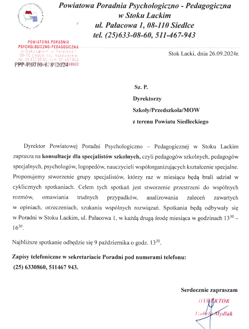 Dyrektor Powiatowej Poradni Psychologiczno – Pedagogicznej w Stoku Lackim ogłasza nabór kandydatów na stanowisko psychologa oraz logopedy.